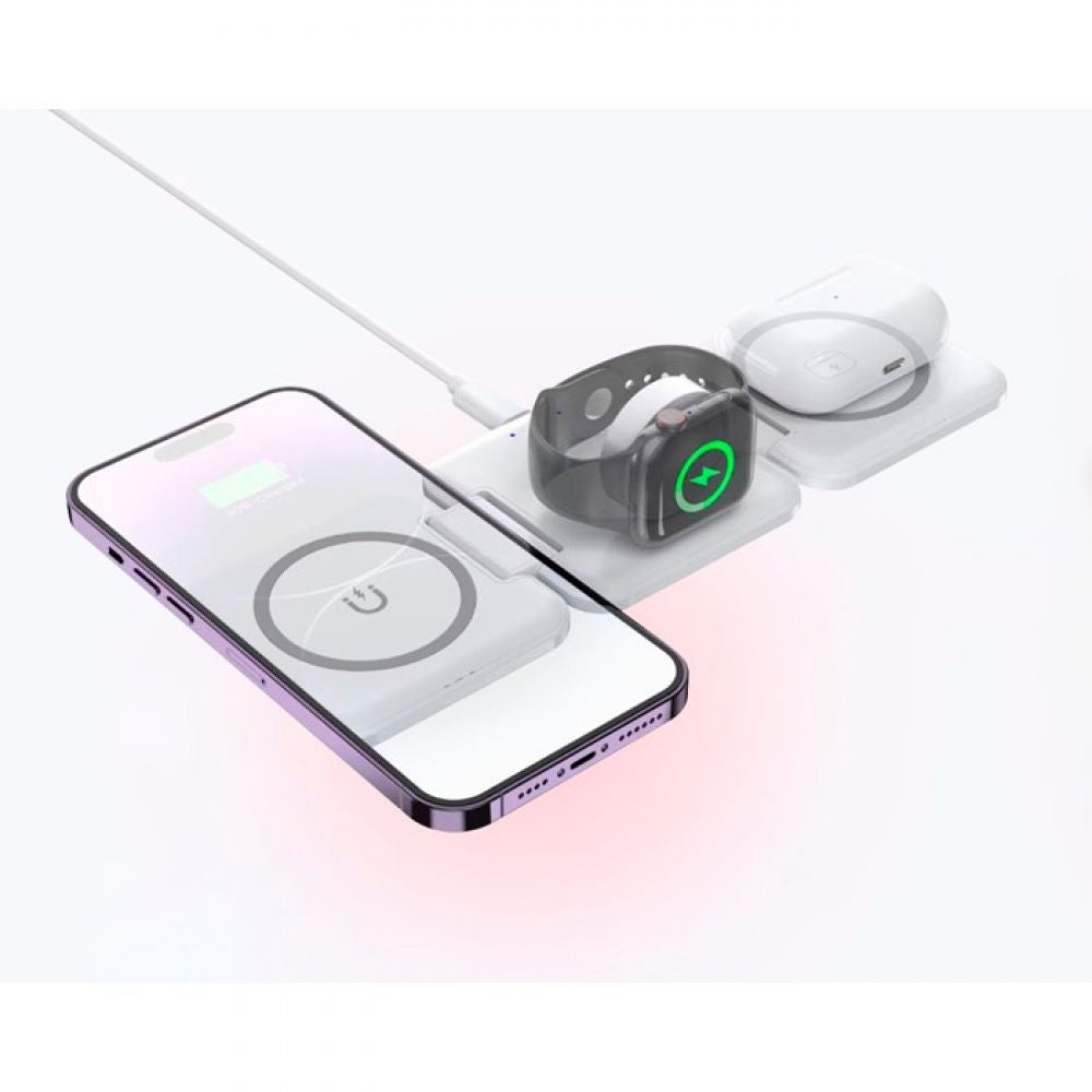 Haz que tu rutina sea más fácil y moderna. Con el Cargador 3 en 1, mantén todos tus dispositivos siempre listos y con energía.